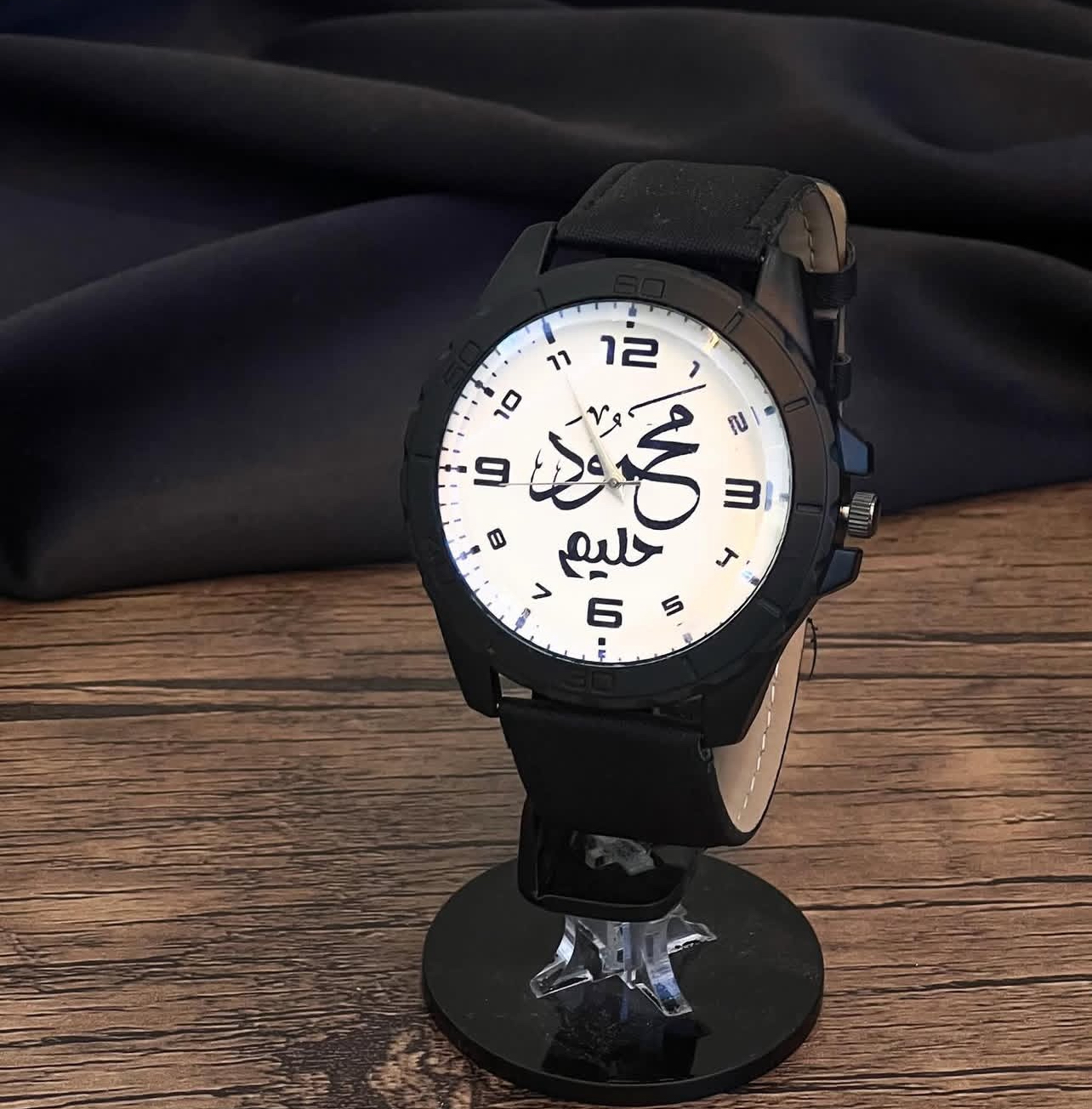 ساعة رجالية بــ لونها الأسود بتصميم خاص بالاسم